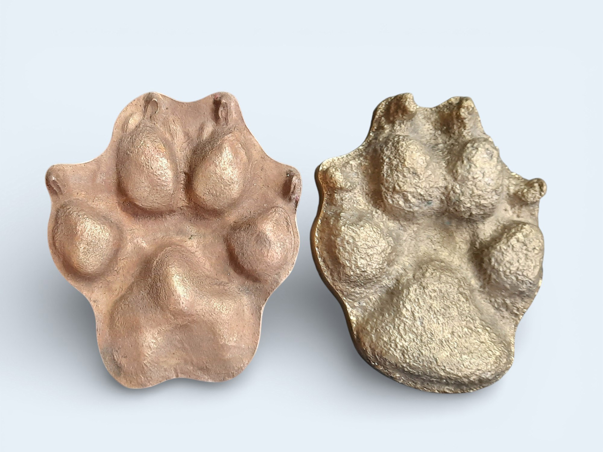 The Giant Pet-Paw is fully handcrafted, so subtle differences in texture and surface may be present. Small ridges, faint lines, gentle markings, or minor irregularities can appear during casting. These natural variations highlight the skill of traditional metalworking and make each set truly one-of-a-kind. Slight color or tone differences may also occur, adding to the uniqueness of each piece. The Giant Pet-Paw truly is your pet’s life-size paw, preserved forever in metal.